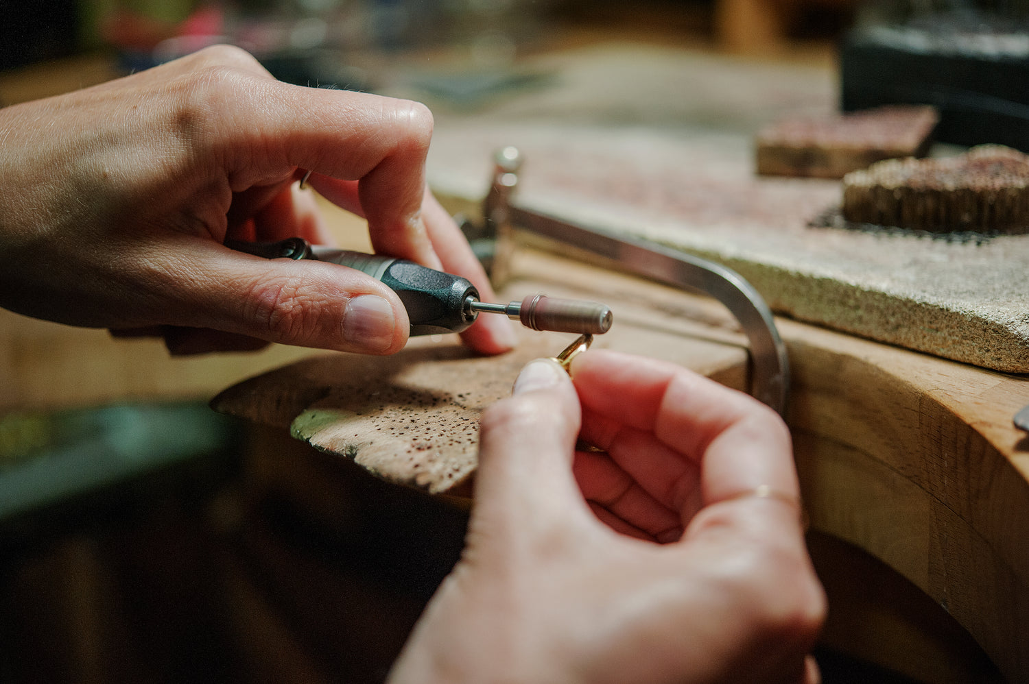 entièrement ses bijoux en utilisant les savoir-faire traditionnels de la bijouterie.