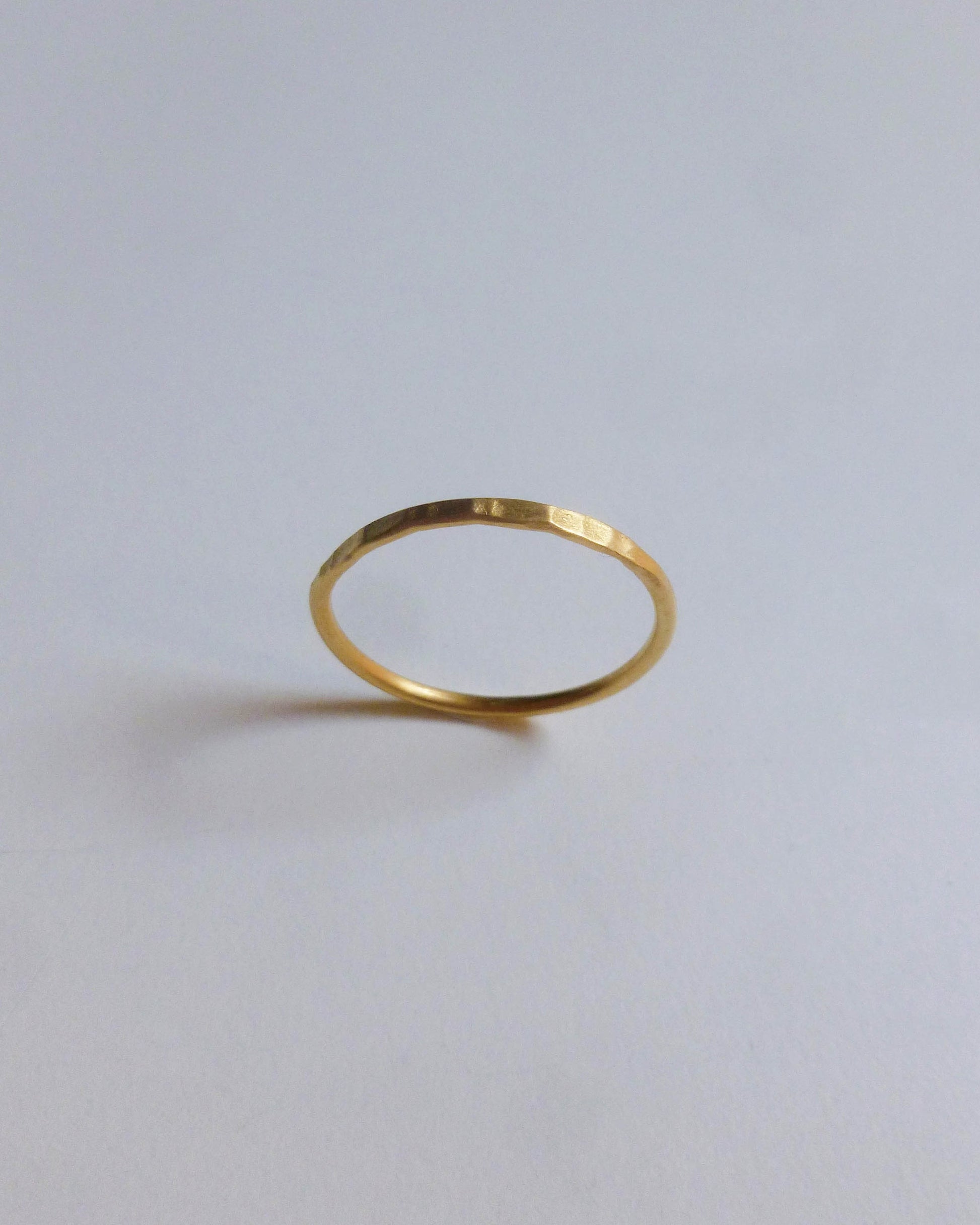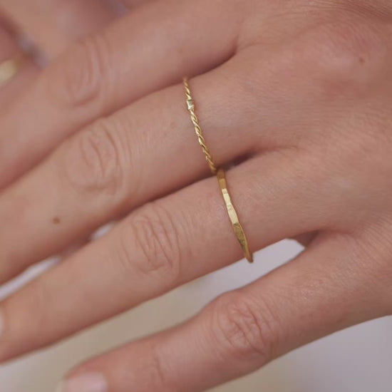 L'anneau fin Vague s'associe à tous les styles et se distingue par son détail, un martelage léger sur une partie de la bague. Il se décline en or jaune ou en or blanc 18 carats.