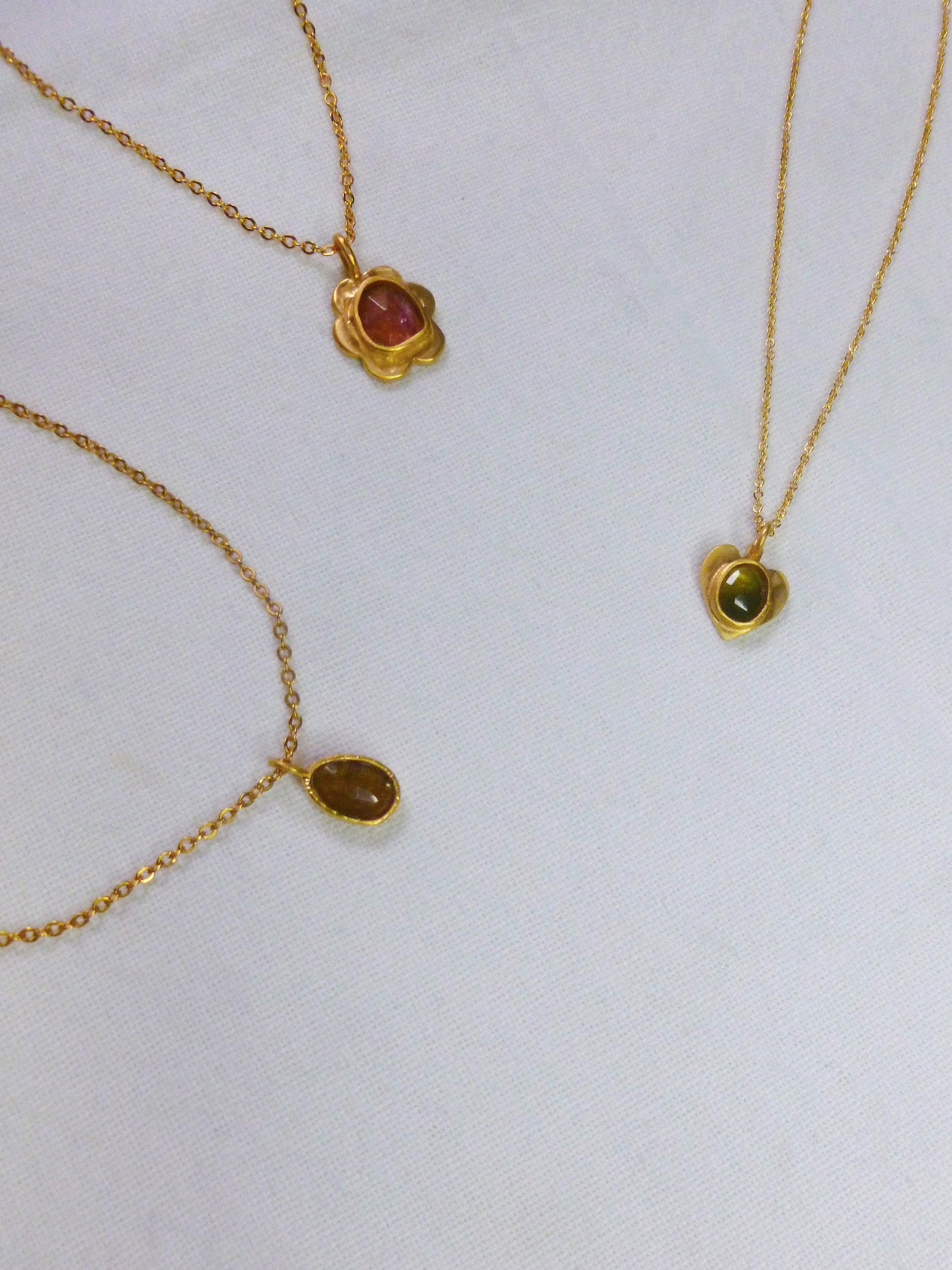 - Pendentif avec une tourmaline brune. Dimension 0.7x1.1cm