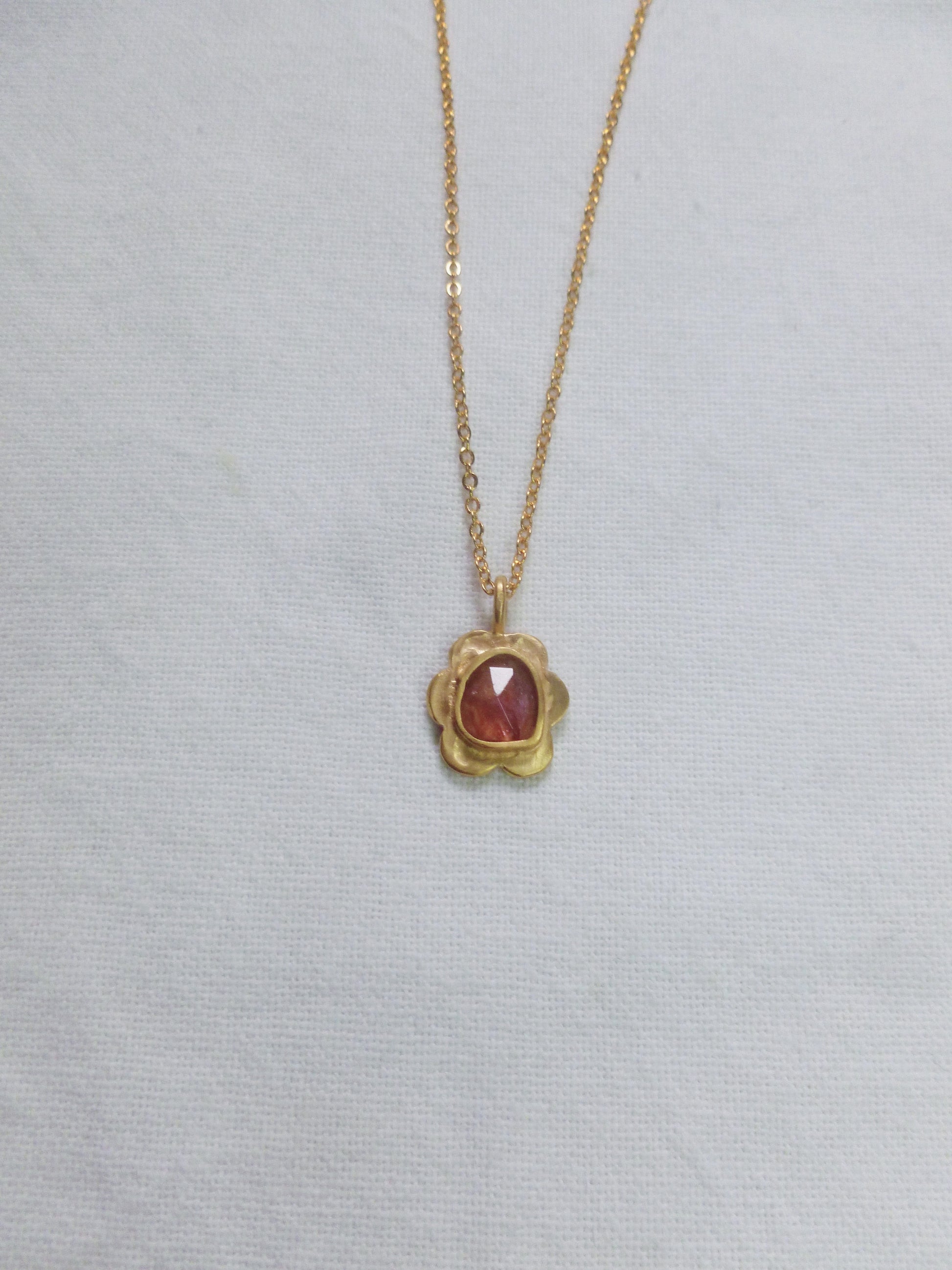 - Petite fleur avec une tourmaline rose au centre. Dimension médaille 1.3x1.5cm